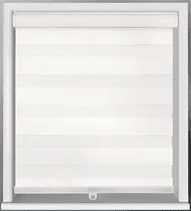 Day-Night blinds, also known as Vision or Zebra blinds, feature alternating sheer and horizontal fabric strips, providing a unique combination of adjustable privacy and light control.