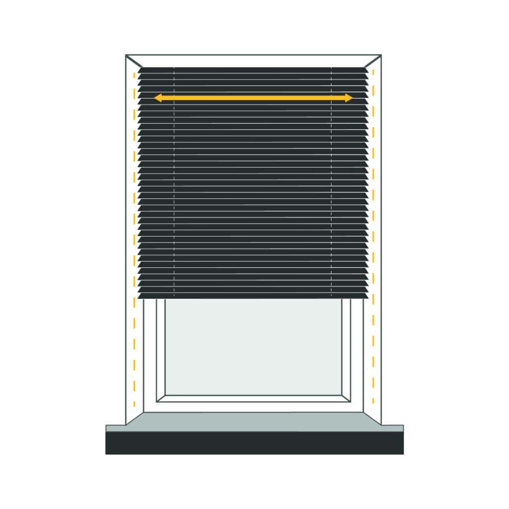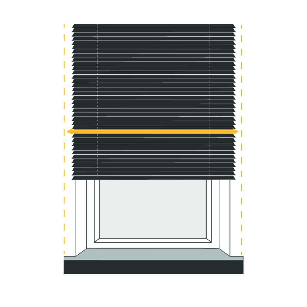Determine the desired amount of overlap for your blind on both sides of the window recess, and measure this width accordingly. Keep in mind that due to the chain control and brackets, the fabric will be 35mm narrower than the specified size.