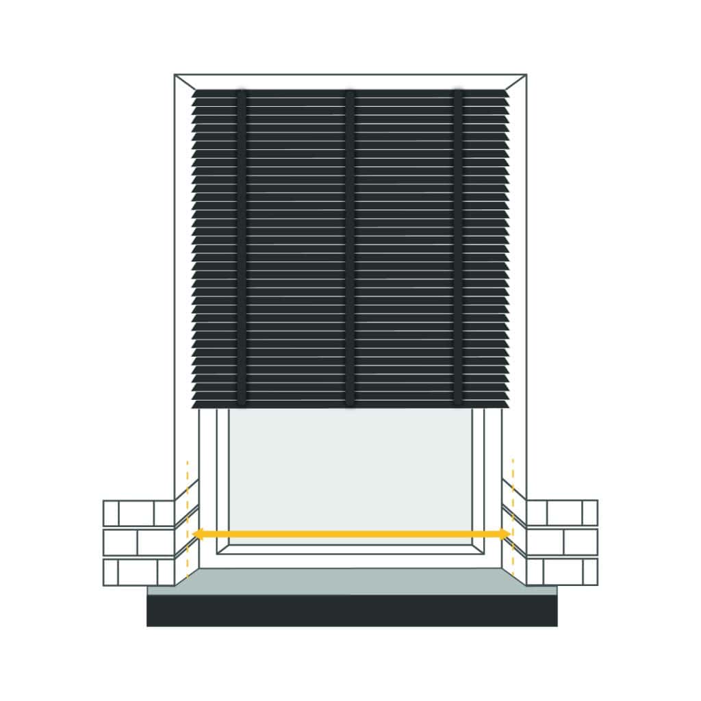 Take measurements of your window recess width at three positions: top, middle, and bottom, selecting the smallest measurement as your width.
