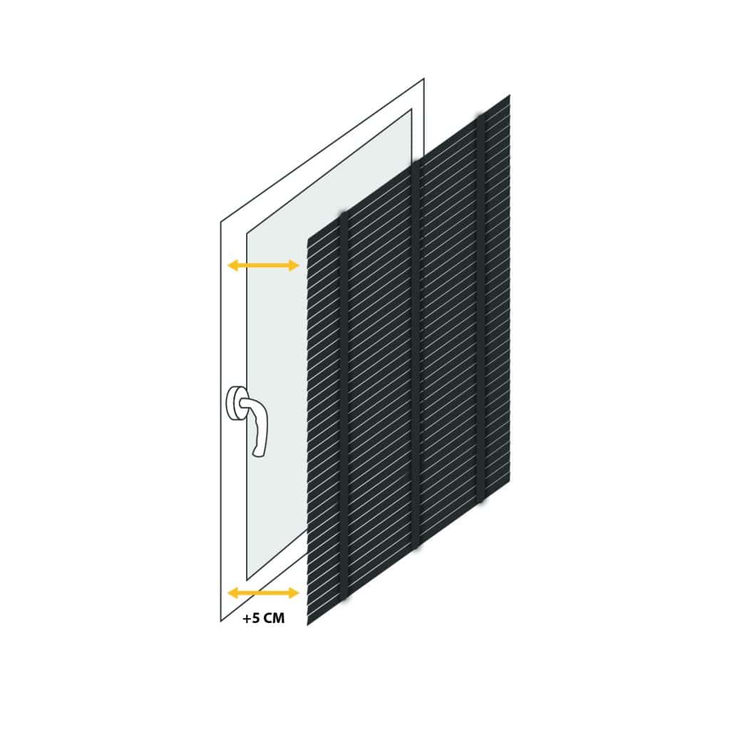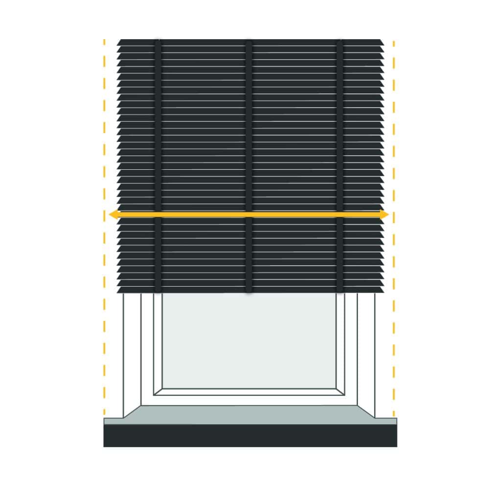 Determine the desired amount of overlap for your blind on both sides of the window recess, and measure this width accordingly. Keep in mind that due to the chain control and brackets, the fabric will be 35mm narrower than the specified size.